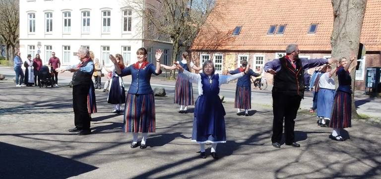 Bei strahlendem Sonnenschein konnte die Nörder Danzkoppel nach zweijähriger Pause den traditionellen Ostertanz wieder aufnehmen.